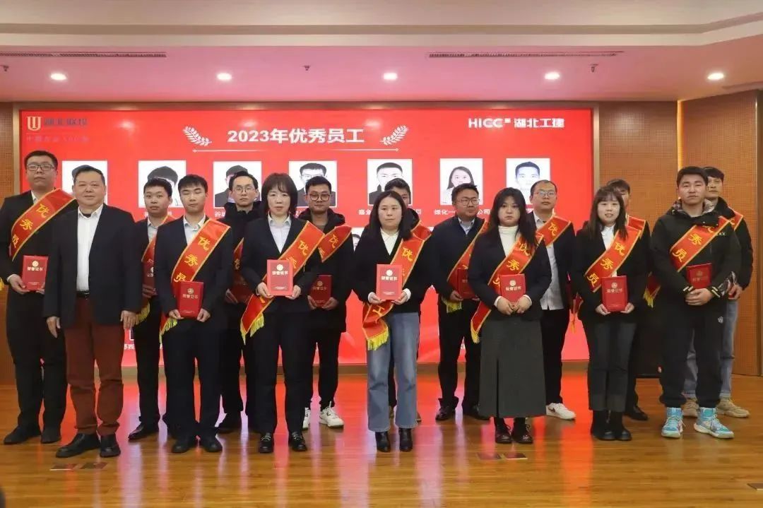 胡超宣讀了《關于表彰湖北工建基礎設施建設有限公司2023年度先進的決定》,公司領導班子成員依次為獲得2023年度“優秀團隊獎”“優秀供應商”“優秀經理獎”“優秀員工獎”“新人成長獎”“安全生產先進個人獎”“質量管理先進個人獎”的代表頒發榮譽證書和獎牌。