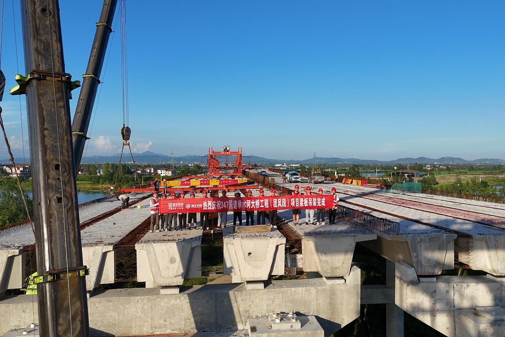 347國(guó)道舉水河大橋項(xiàng)目預(yù)制梁安裝任務(wù)全線告捷